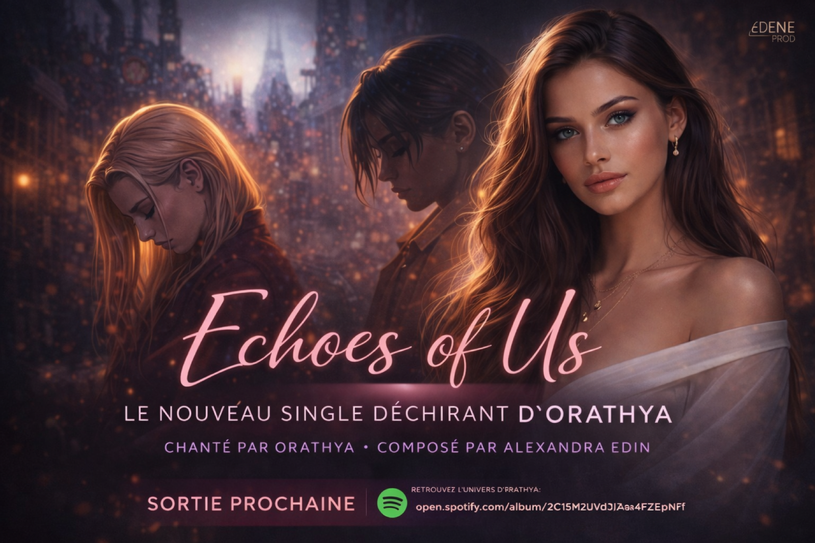 Dans quelques jours, un nouveau chapitre musical s’ouvrira dans l’univers d’EDENE PROD. Avec Echoes of Us, la voix singulière et envoûtante d’Orathya revient porter une œuvre profondément émotionnelle, composée par Alexandra Edin.